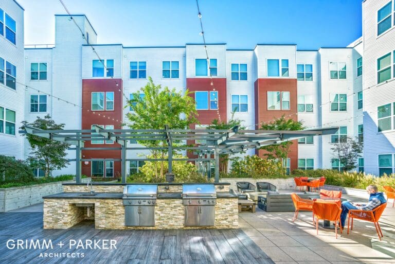 Residents also enjoy a range of modern amenities—including a fitness center, outdoor fire pits, and a conference room—making Studio 3807 an exciting and dynamic place to call home. Justin worked as part of the design team at Grimm and Parker on the completion of the Contract documents. He oversaw the project during construction and led the coordination effort between the contractor and consultant team.